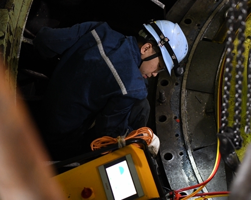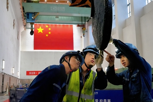 清江公司檢修公司青年員工在隔河巖4號機組A修現場(胡中 攝)