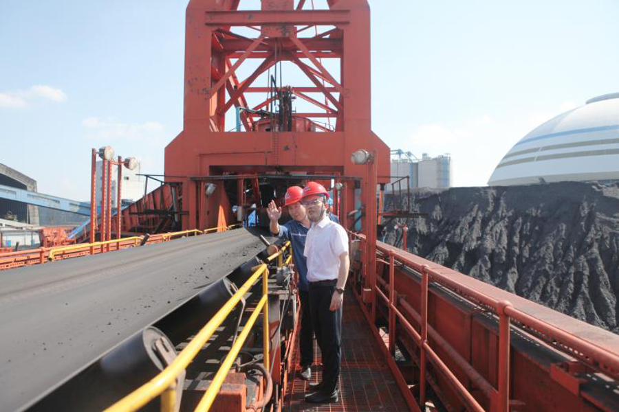 察看鄂州電廠輸煤系統運行情況(攝影:王鑫)